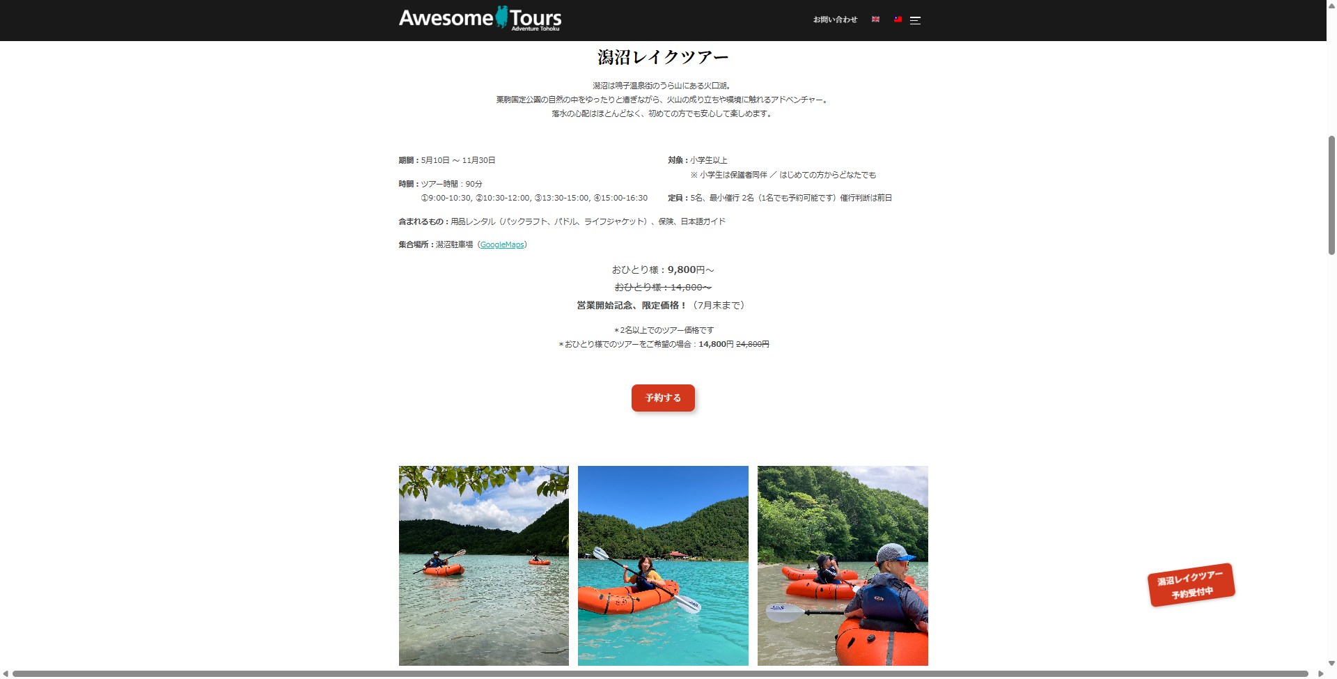 - 現地集合のツアー:1人14,800円(2人以上で9,800円)