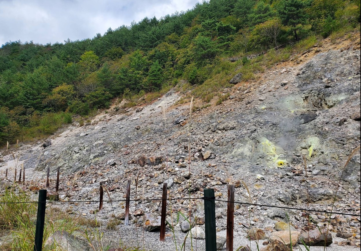 pHは 2.4の強酸性湖。かつてはpH1.4で世界一とも言われたほど。