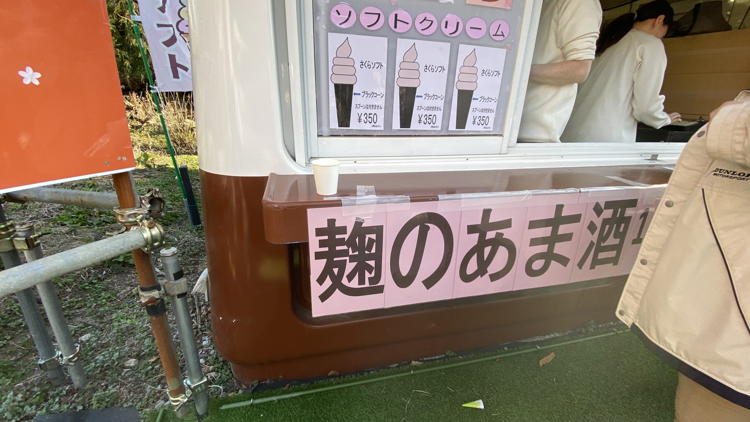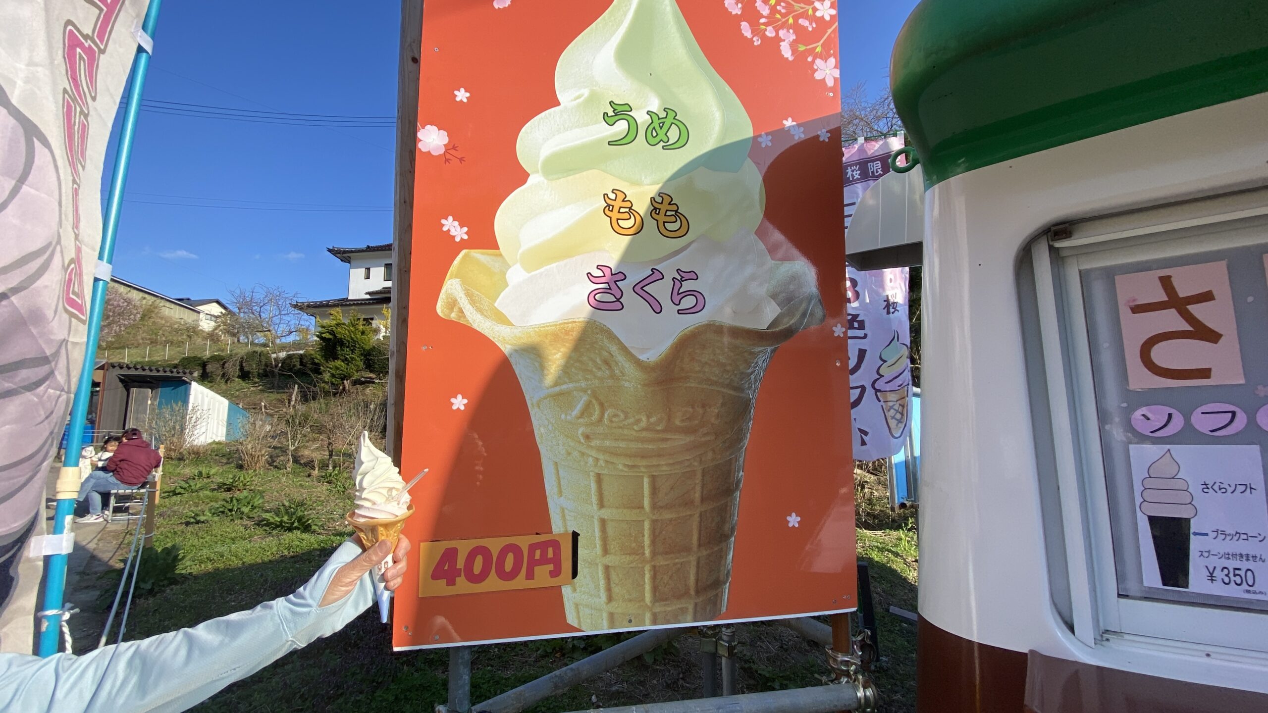 - 三色ソフトクリーム(うめ・もも・さくら):400円