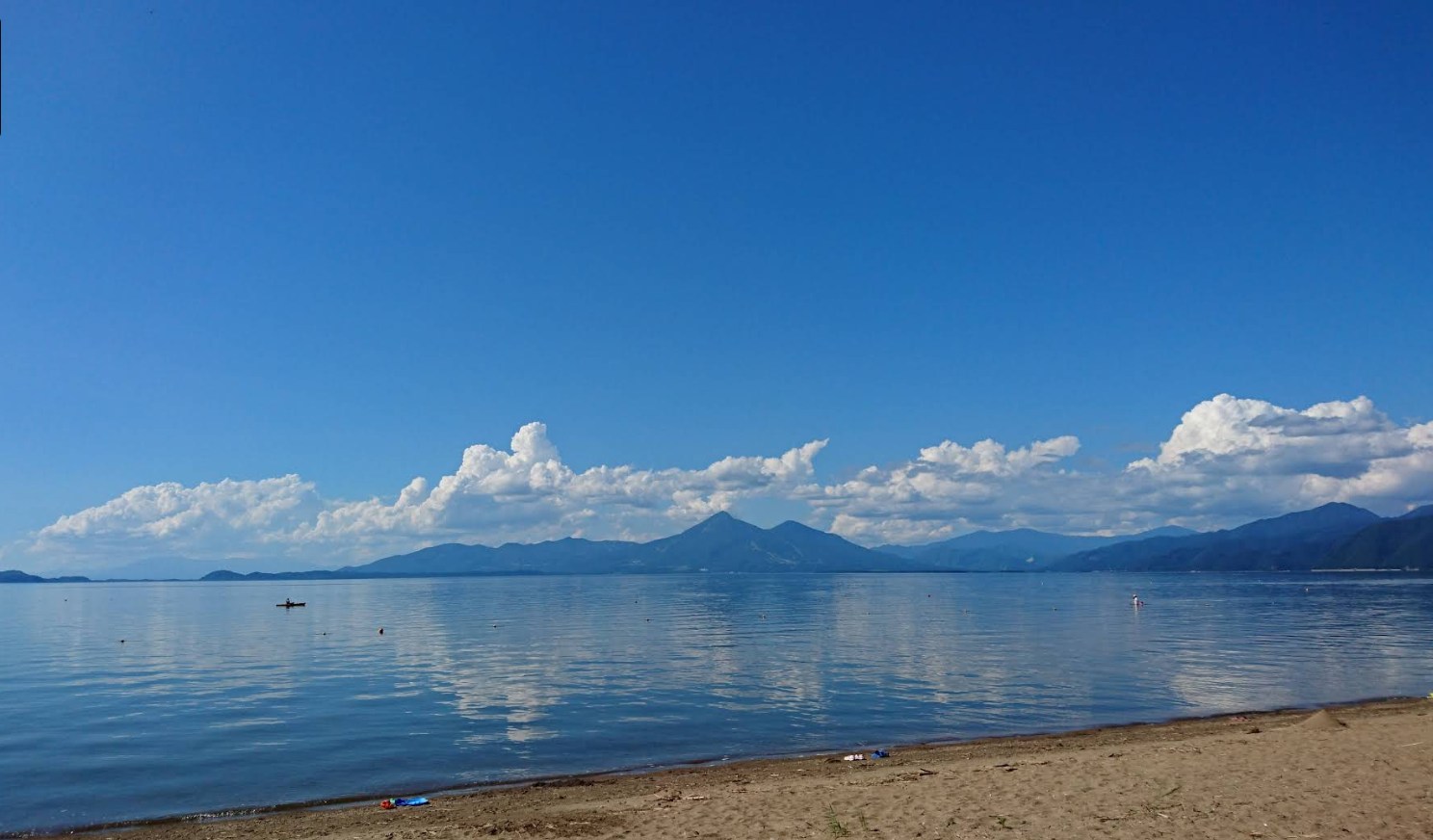 朝5時に起床し、館浜湖水浴場へ向かいます。