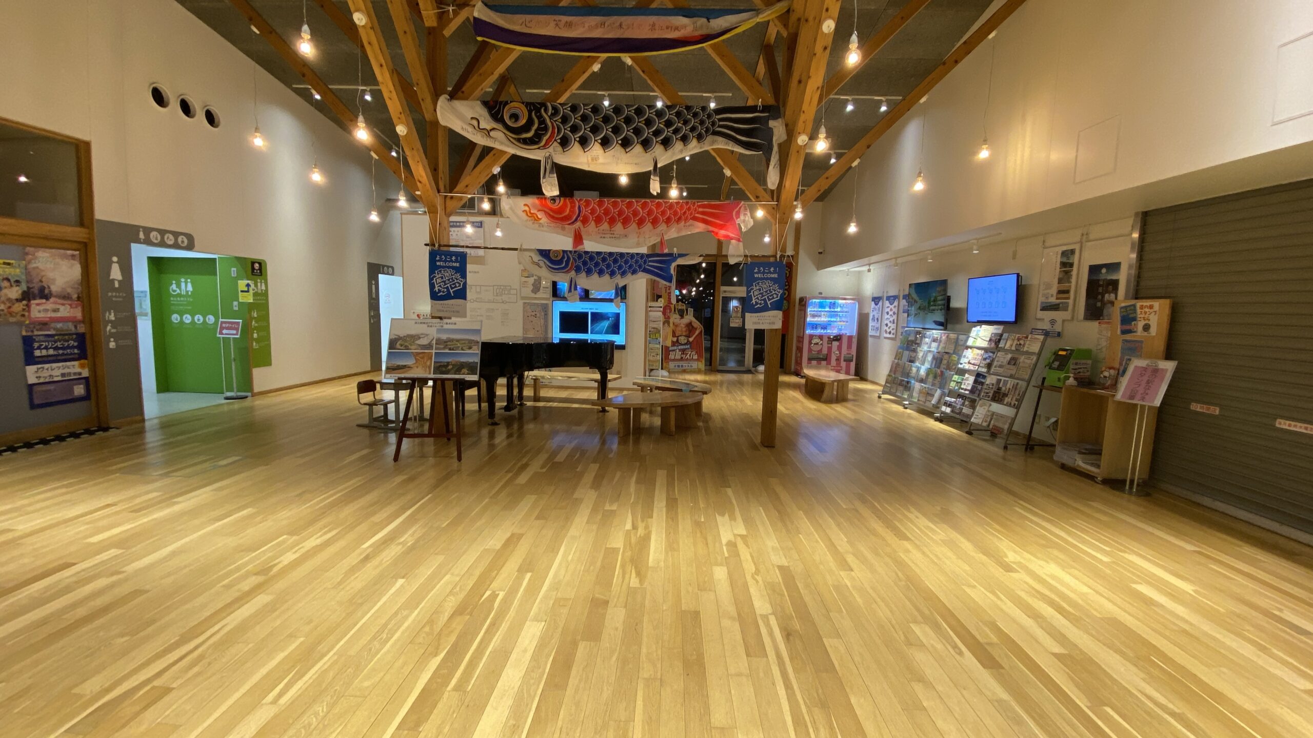 情報館は24時間開放&暖房完備。トイレも清潔で、更衣室やWi-Fiも利用可能(駐車場では弱め)。