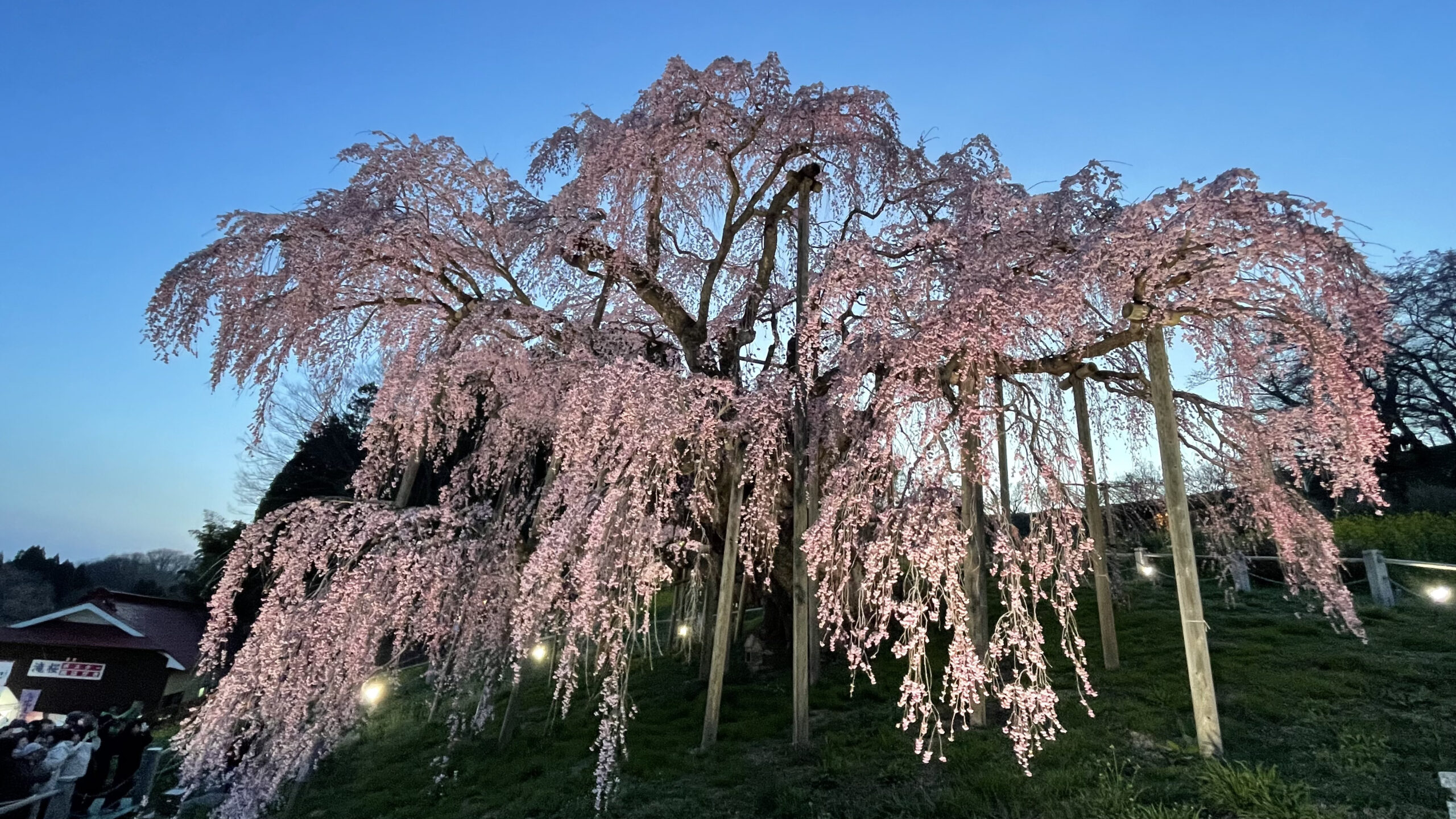 夜景×桜×さくら湖に沈む夕日、感動的でした。