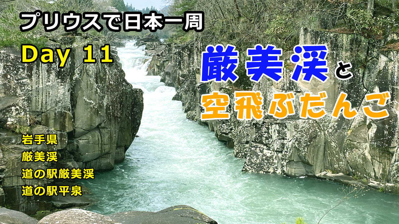 日本一周11日目|厳美渓の空飛ぶだんごと平泉車中泊|雨の猊鼻渓と図書館ワーク