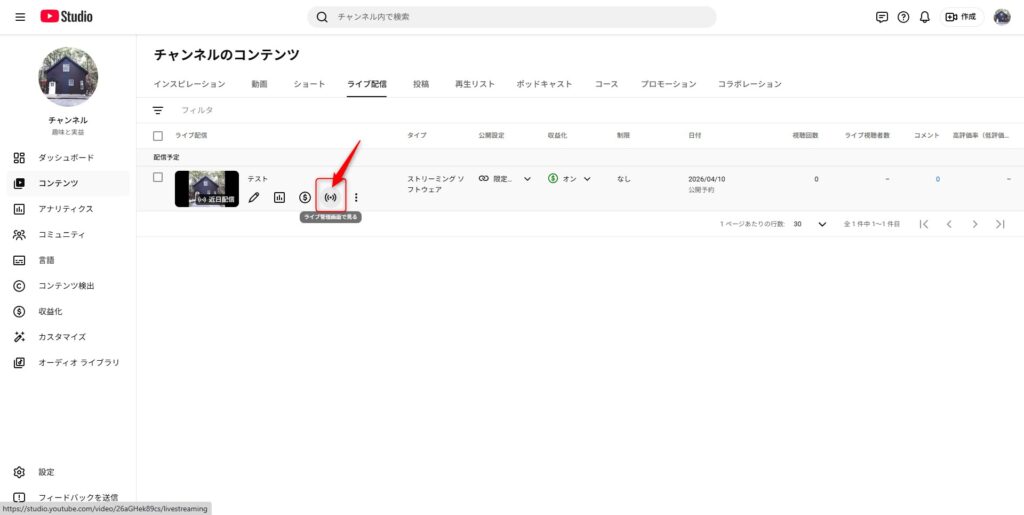 YouTube Studio の上部URLは 管理者専用 です。 視聴者は見られません。