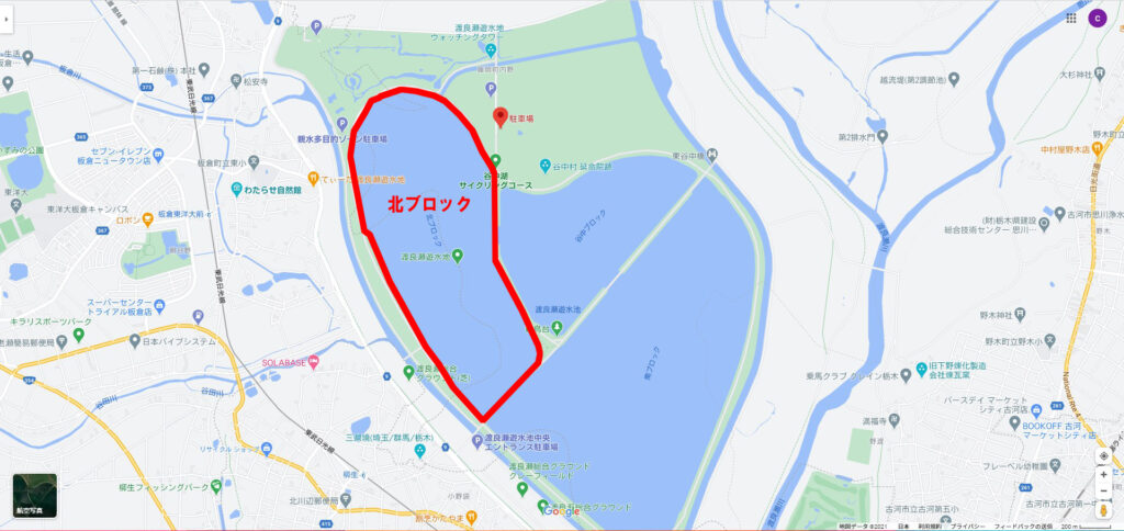 ウォータスポーツは北ブロックなので、北エントランスから入り下図の駐車場