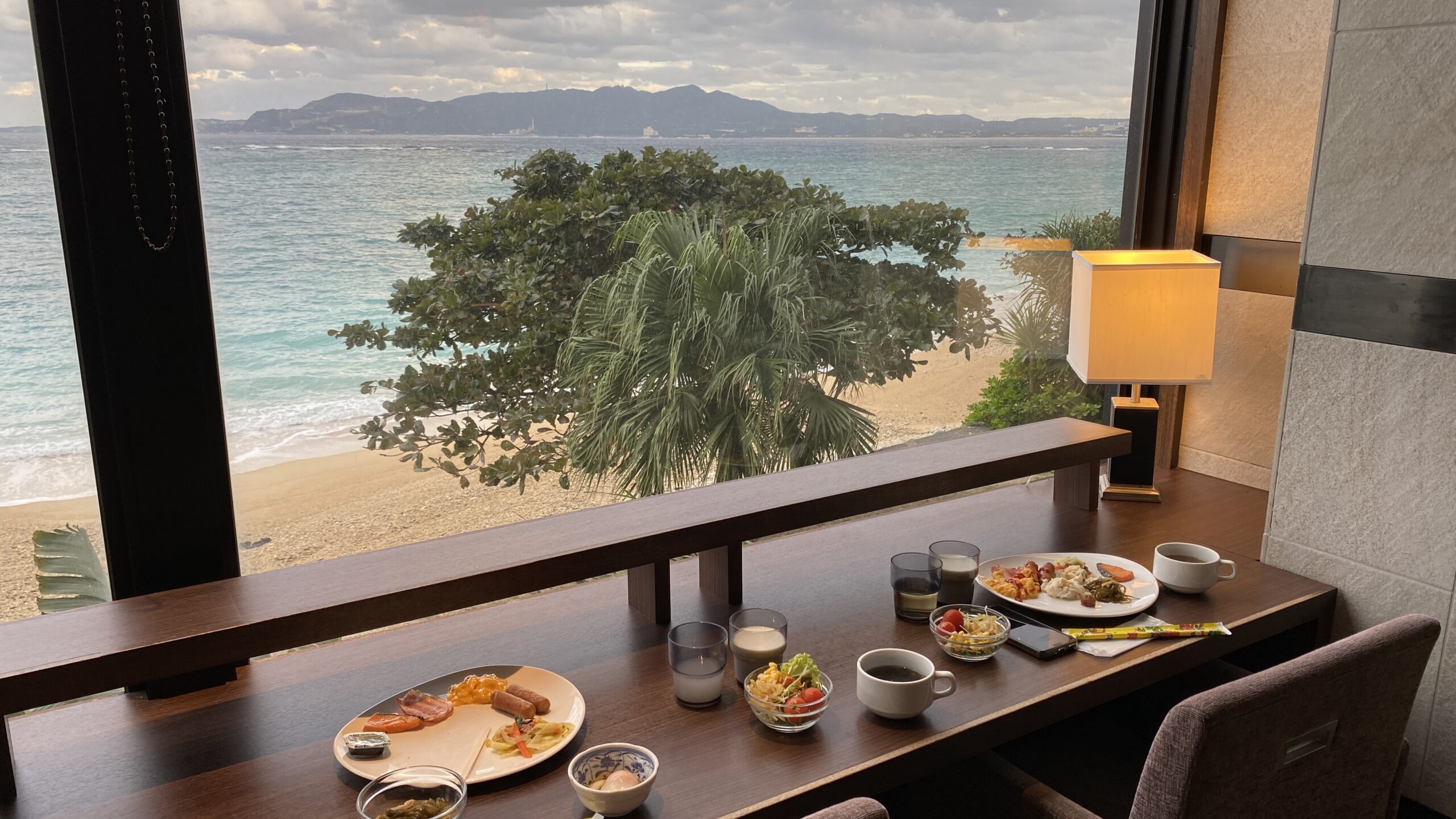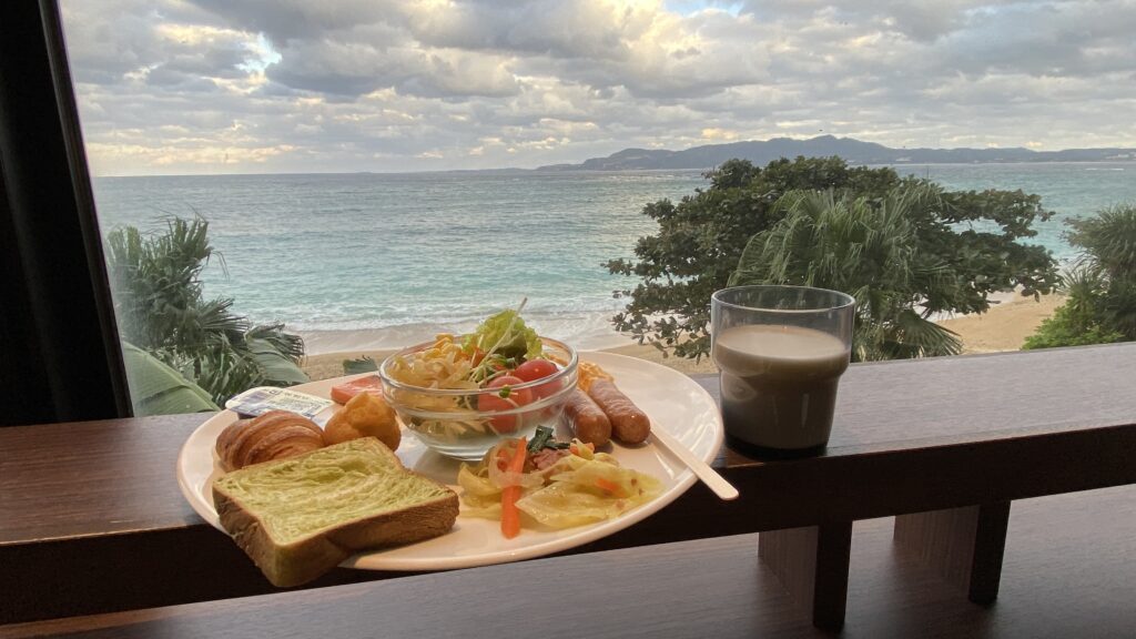 - 朝食はレストランで7時から提供、海を眺めながら食事可能