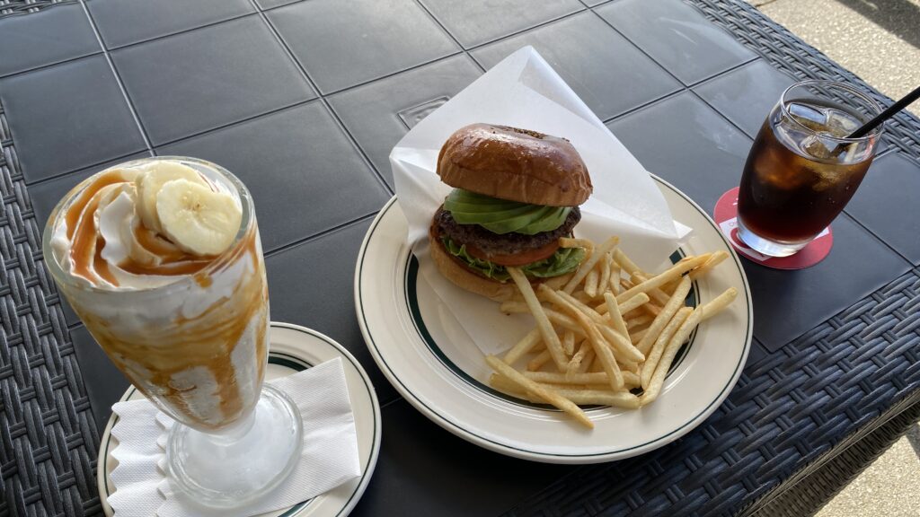 - 昼食:「ガラ(Gala)青い海」でハンバーガーやシェイク(地域クーポン券利用可)