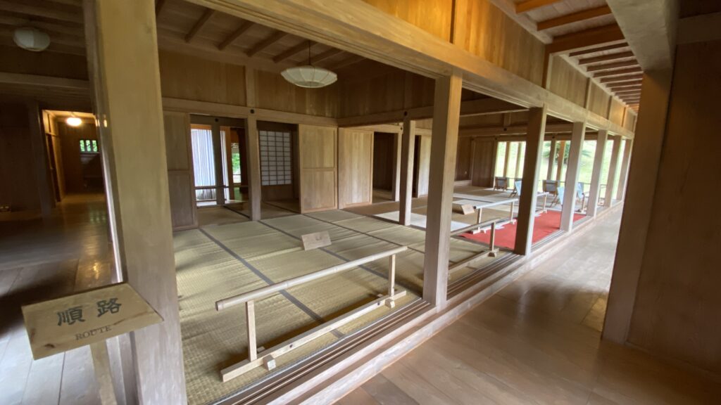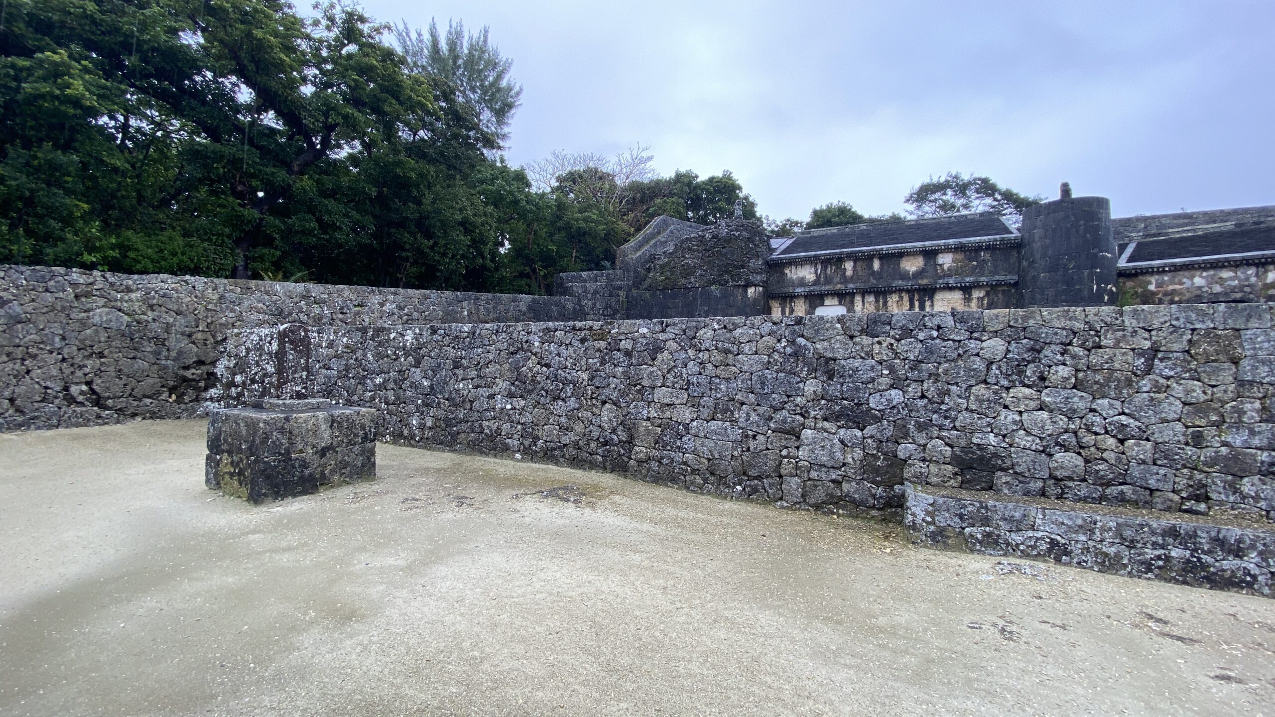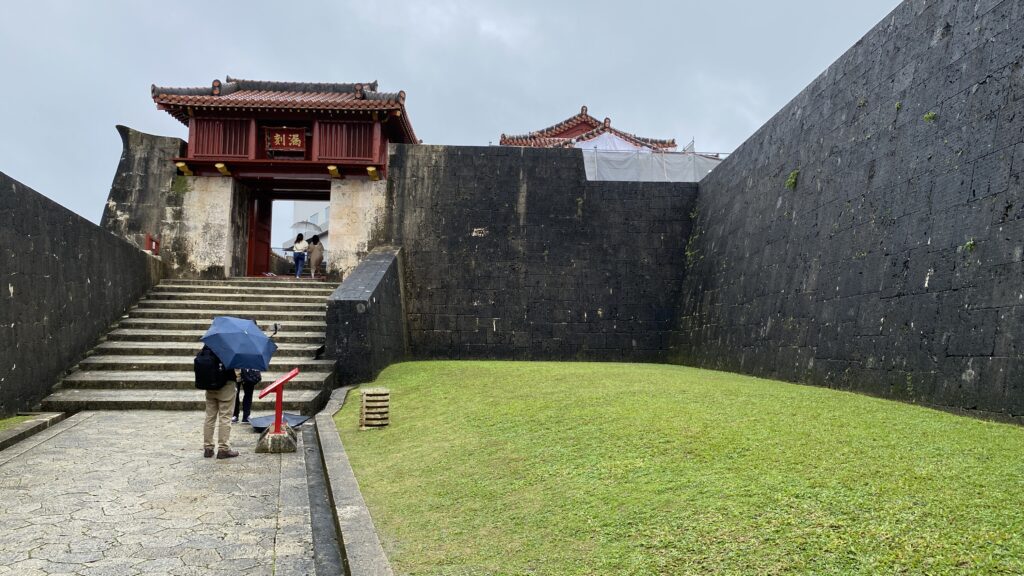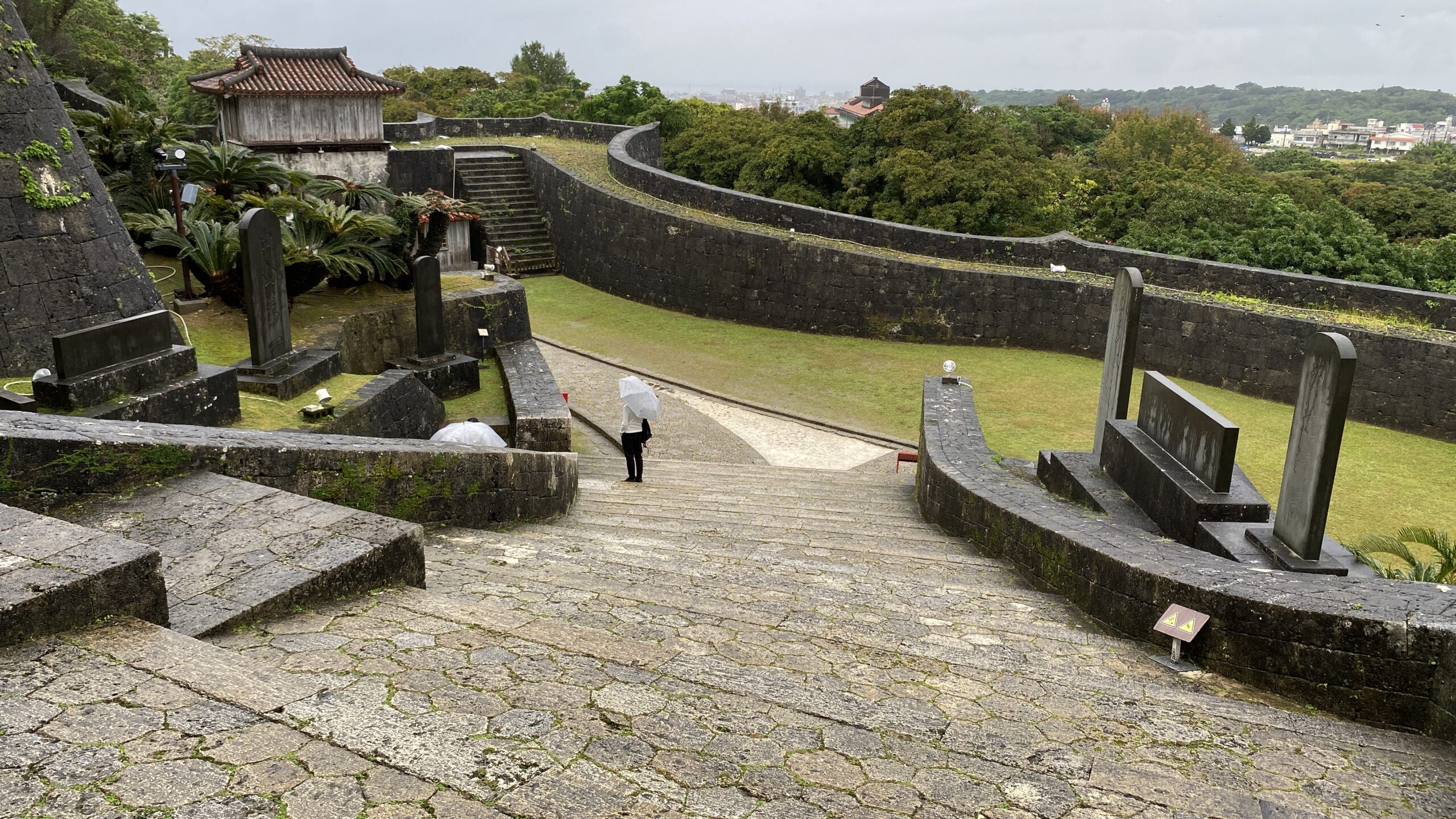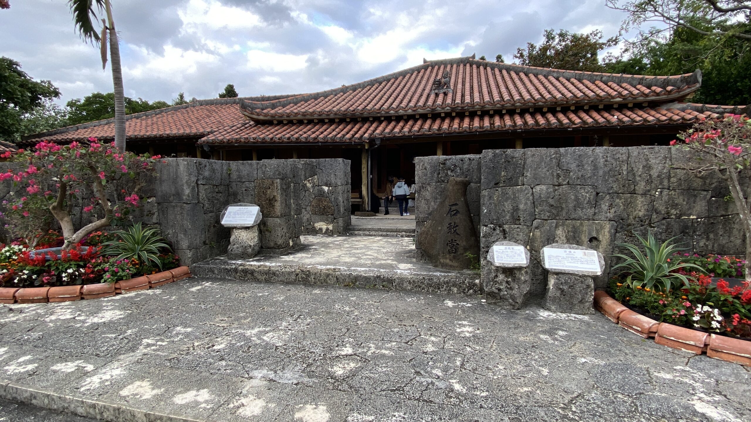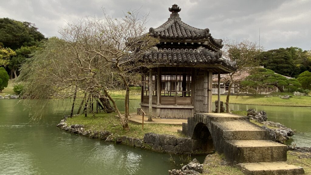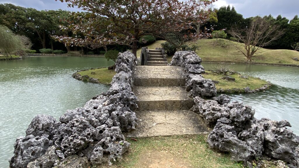 朝はホテルで朝食を済ませ、最初に訪れたのは識名園。琉球王国時代の王族が別邸として利用していた庭園で、池や庭木の配置が美しい回遊式庭園です。雨の日でも庭園内の散策は十分楽しめます。ここは世界遺産にも登録されています。