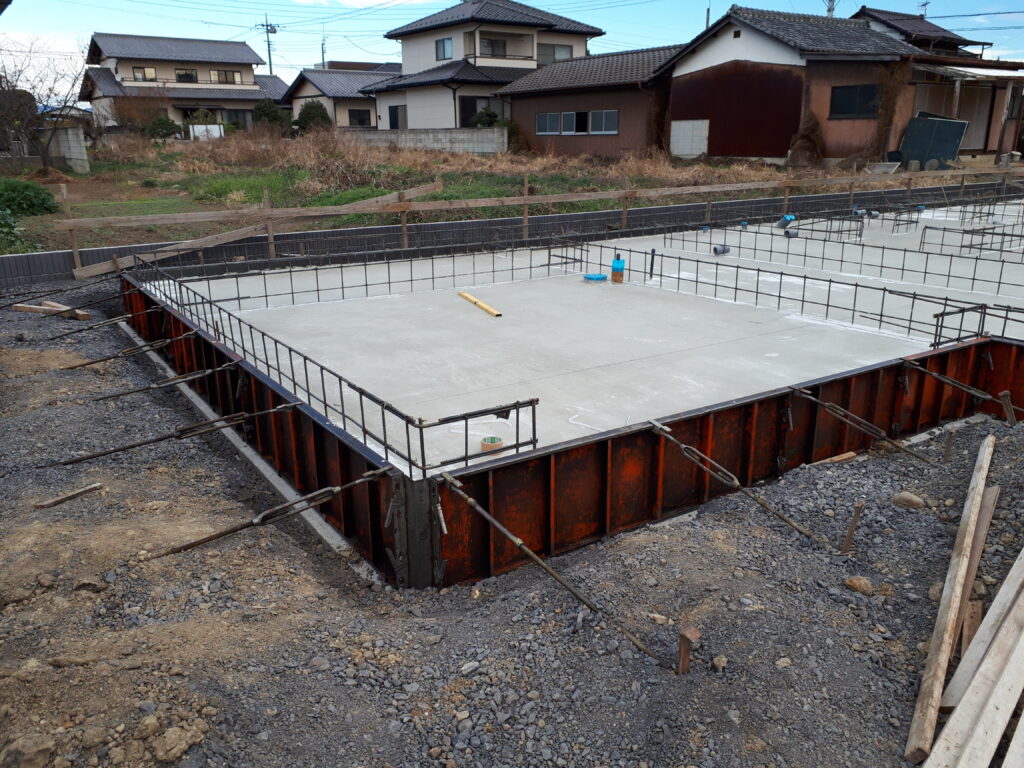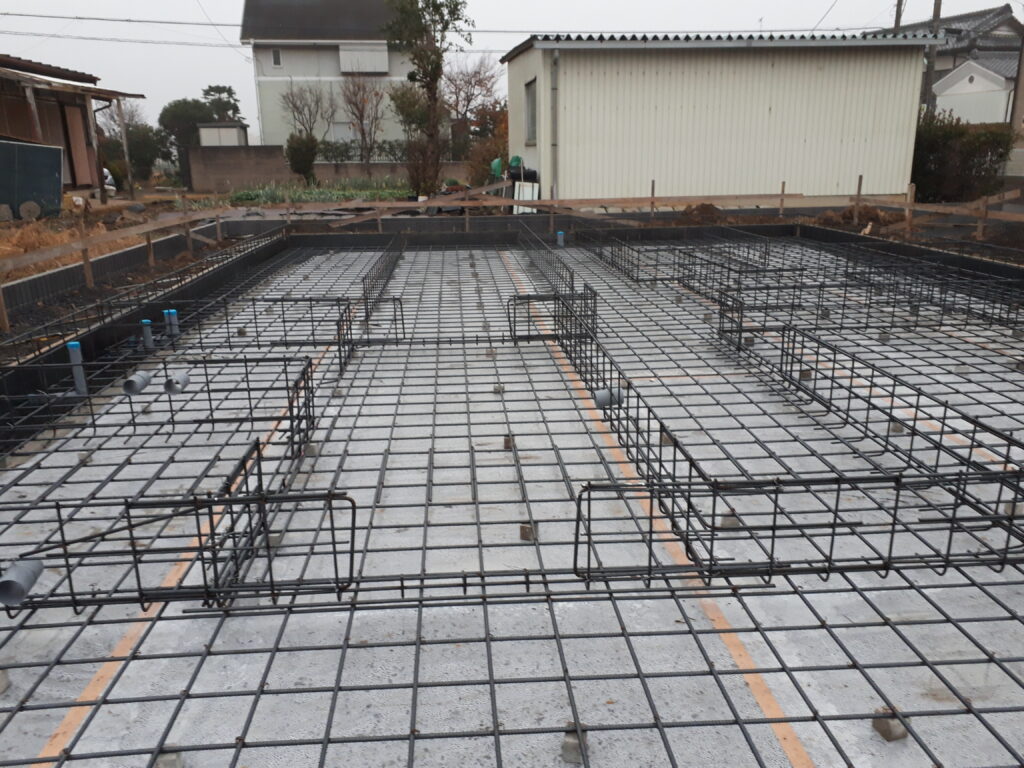 - ベタ基礎一体スラブ、配筋13㎜、スラブ厚150㎜